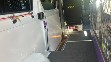 The hydraulic lift on the back of the ambulance can hold 600kg. It is used for larger breeds of dogs who are unwell or lame. Little did we realise how important it would become to some of our patients and their owners.